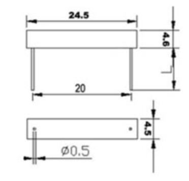 2、干簧管2管腳間距:18, 19, 21mm可選
